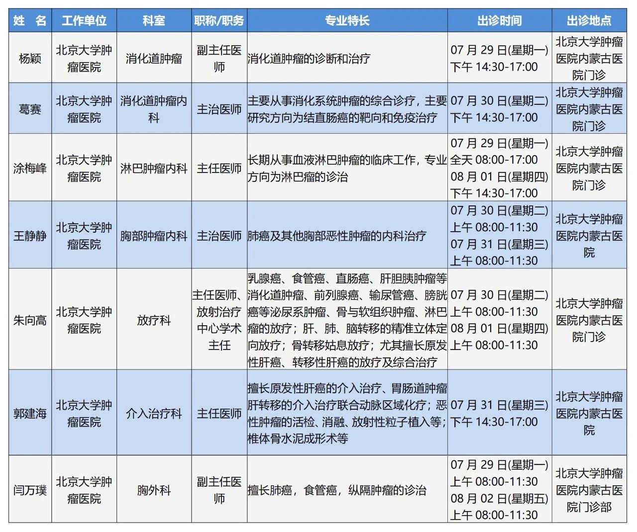 “京蒙协作”|本周北京协作医院专家出诊安排